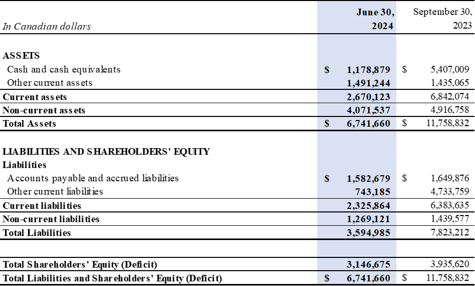 For Q3 Fiscal 2024, our total other income was $1.0 million, compared to total other expenses of $0.5 million in Q3 Fiscal 2023. This change in other income (expenses) net is mainly due to the favorable $2.0 million change in fair value of warrant liabilities as a result of the remeasurement of the warrant liabilities at June 30, 2024, driven by a decrease in the underlying common share price on June 30, 2024, offset by a $0.4 million increase in share issuance costs associated with the two US public offering financing activities in Q3 Fiscal 2024.